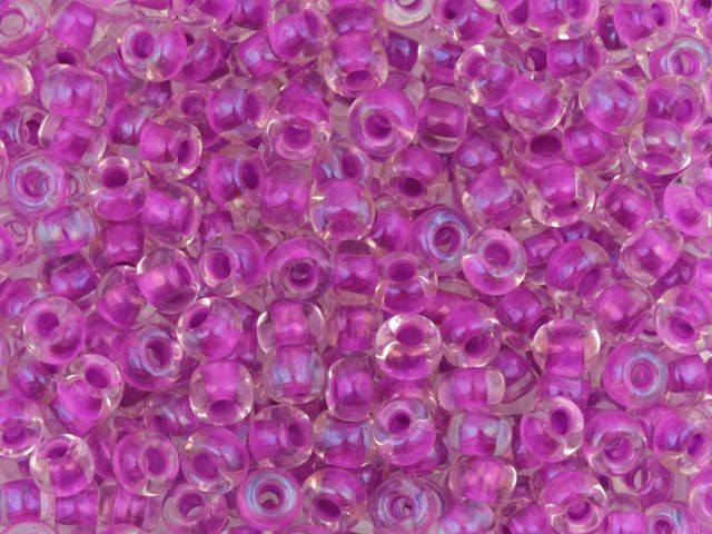 38 g Toho Rocailles Inside-Color Crystal/Opaque Fuchsia-Lined TR-06-790